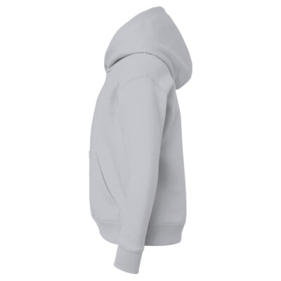Air jet spun yarn equals softer feel and no pill. Double needle stitching . Double lined hood. Pouch pocket. Set in sleeves. 1x1 athletic rib with Lycra®. Quarter-turned body to eliminate centre crease. Also available in adult sizes