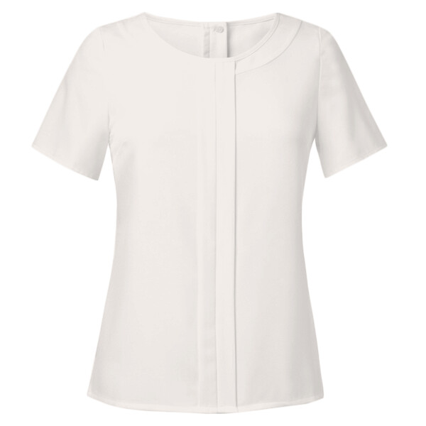 Short sleeve ladies' blouse, round neck, front pleat detail, bust darts,